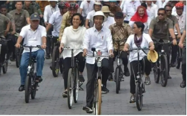zonapublik.com , Presiden Jokowi didampingi oleh menteri dengan pengendara sepeda Kota di Semarang, Jawa tengah, Senin (30/12) pagi.